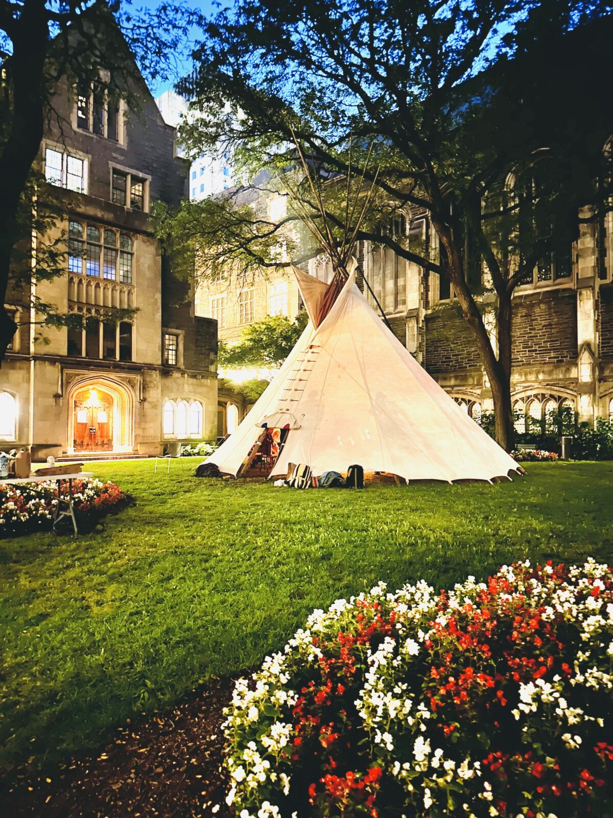 On Sunday September 21st International Day of Peace, on the sacred grounds of the Union Theological Seminary just steps away from the Columbia University campus and next to Riverside Church where Reverend Dr. Martin Luther King, Jr., delivered one of his most memorable sermons when he voiced compelling opposition to the war in Vietnam, a tipi was built to held the gathering. Weaving teachings from Indigenous Wisdom Keepers and interfaith leaders we were guided in meditation with the intention to reconnecting us to the Earth and rekindle the light we all have within, charging our internal waters, and raising the vibration of the planet as one unified whole. Gathering waters from different sacred sources of planet into one vessel that will hold the blessings of humanity. These waters will then travel with the Delegation to Brazil, where they will remain in ceremony throughout the month of November at COP30. Led by Jacob Johns, a Hopi and Akimel O’odham environmental defender, Kareena Gore, lawyer and climate activist, and the unexpected visit of former Vice President Al Gore, through storytelling, the ceremony became a deeply, profound spiritual and magical experience.