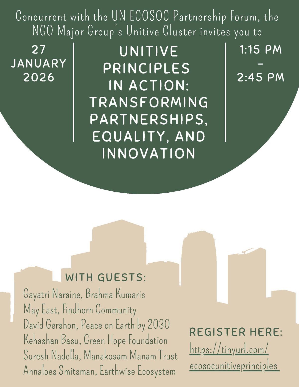 Event co-organized by the Unitive Cluster within the NGO Major Groups at the UN and the Brahma Kumaris.