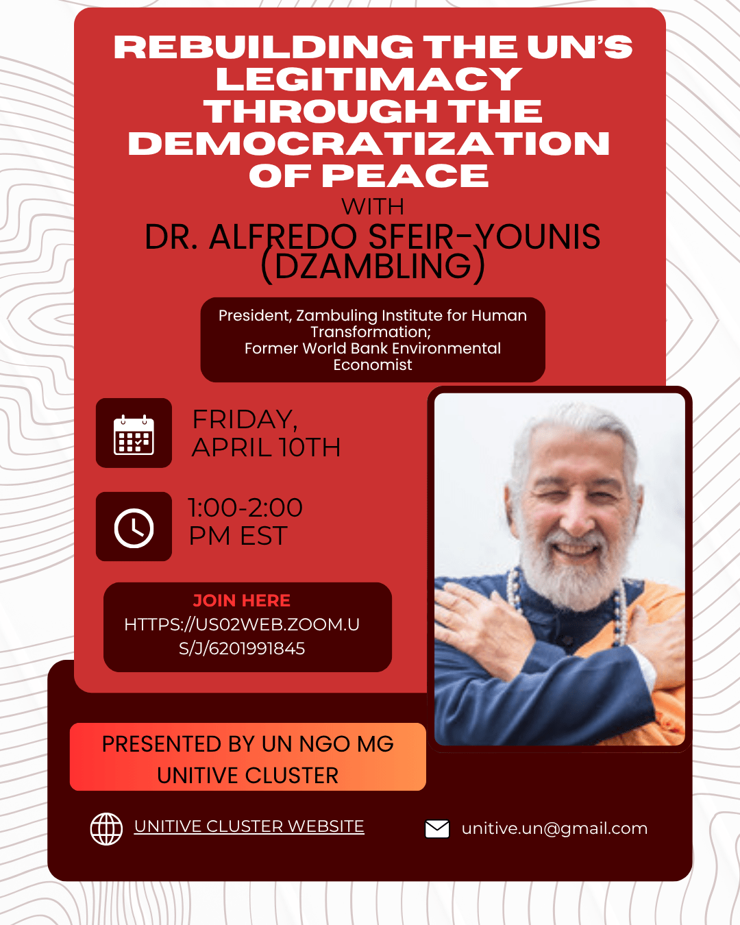 We have a special guest at our next meeting, Fri 10 April, in recognition of International Day of Conscience -  Dr. Alfredo Sfeir-Younis on "Rebuilding the UN’s Legitimacy through Democratization […]
