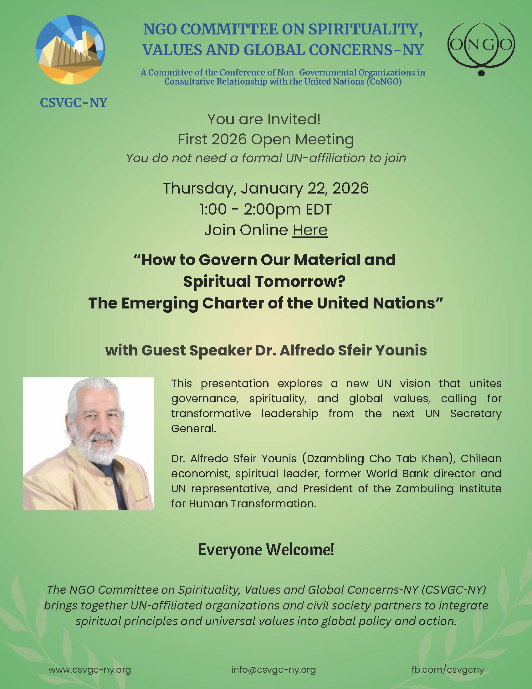 NGO Committee on Spirituality, Values, and Global Concerns-NY (CSVGC-NY) as Vice-chair
